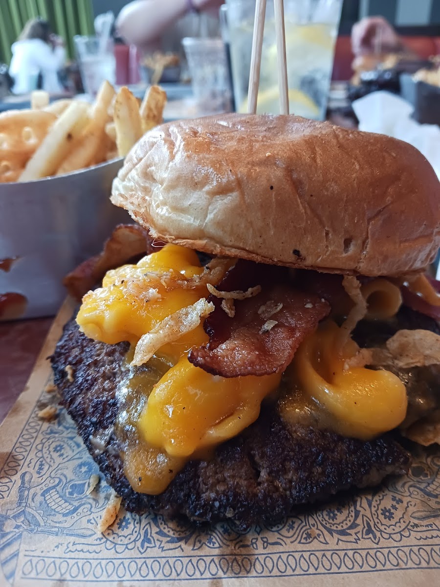 The photos are of the macaroni and cheese burger, chicken wings and lobster lollipops. We visited on a Friday night and we're seated immediately with no reservation. The waistaff was efficient and knowledge of the menu. It had the feel of a elevated diner (not in a bad way). The is a wall of plates signed by celebrities which was kinda cool to look at. The food was well prepared and good. The location was very convenient to hotel guests and the casino. It is a fun place to grab a bite and cocktail before heading into the casino